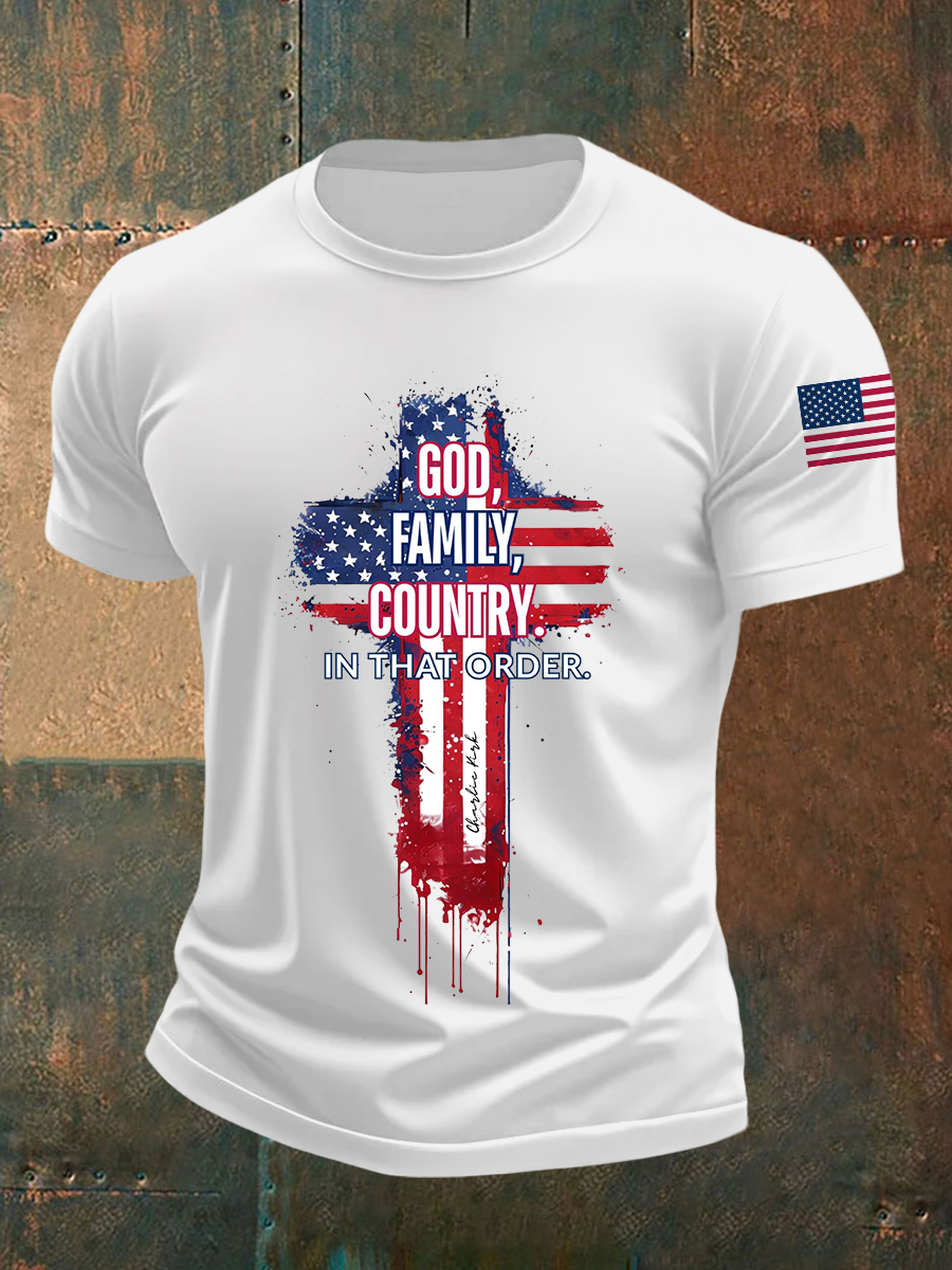 Men's God Family Country In That Order Cross Short-sleeved T-shirt