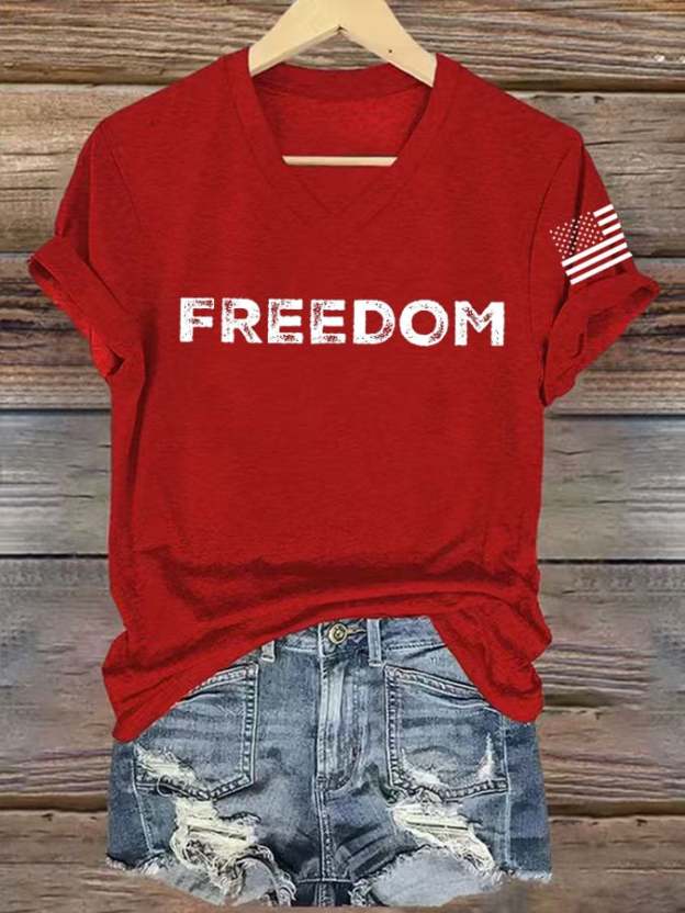 Women's freedom Print V-Neck T-Shirt